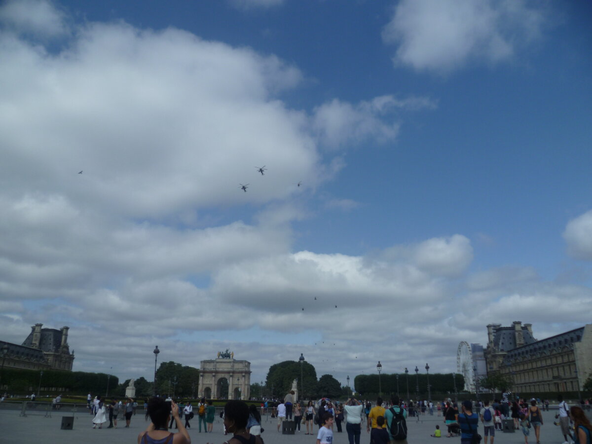 Как, оказывается, хорошо возвращаться к тому, что однажды уже было с нами. Как хорошо, если это - что-то хорошее. Пусть это было всего лишь раз, но - было! И в книге жизни нашей такая страничка есть. Надо перечитывать её время от времени. Что я и делаю этими днями. И безмерно рада, что вам это по душе, бесценные читатели мои, разделившие со мной мою ностальгию и вместе со мной побродившие по залам парижского дОрсэ. Ну а что же Лувр? Был он, был..Только на следующий после Дня взятия Бастилии день. Я в предыдущую статью не добавила парочку фото. Говорю же, полезно иной раз по закромам пошарить))) Военный парад в тот день был ещё. Военные вертолёты в небе. и конница французская. ...Устали в тот день безмерно. Не столько хлеба было, сколько зрелищ...И утром, и днём, и поздним вечером, когда плыли по Сене.. "Надо где-то ночевать, однако..Знаю я тут одно местечко. Не раз приходилось там ночевать, когда мест на стоянках не было. Там канал есть. Уточки всякие...Поехали." Завёл уставший, перепо