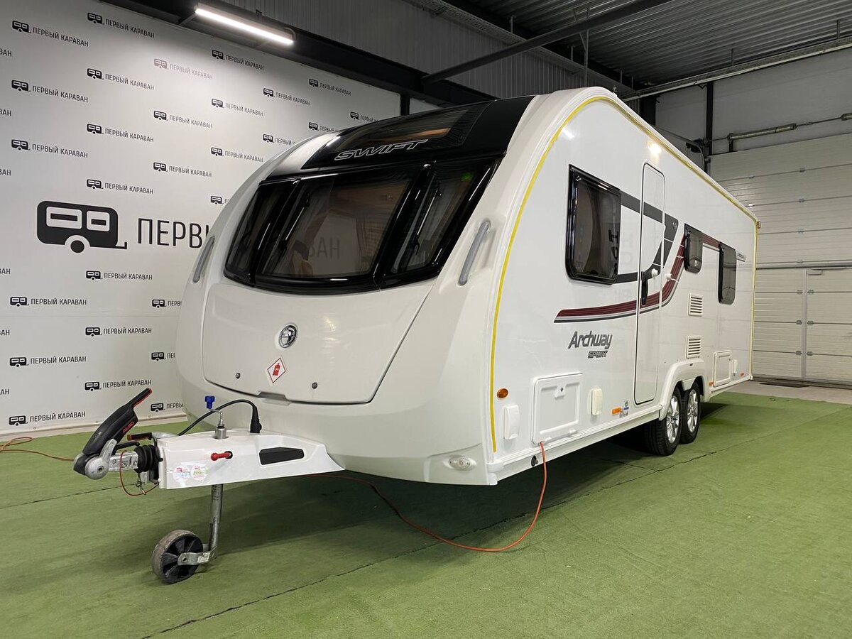 Тип санузла: Раздельный Растаможен (СБКТС, ПТС получены) | Без пробега по РФ Английский кемпер Swift Archway Sport Sudborough на двух осях для 6 человек с тремя спальными зонами: — в передней части прицепа: диваны, которые можно трансформировать в большую кровать — в середине прицепа: кухня и обеденная зона, которая разбирается в двухъярусную кровать — в задней части прицепа: французская кровать и раздельный санузел В караване также есть автономные отопление и бойлер Truma Combi 6E, микроволновка, солнечная батарея, а в комплекте идет запасное колесо Технические характеристики автодома: — система отопления Truma Combi 6E (газ/220в)