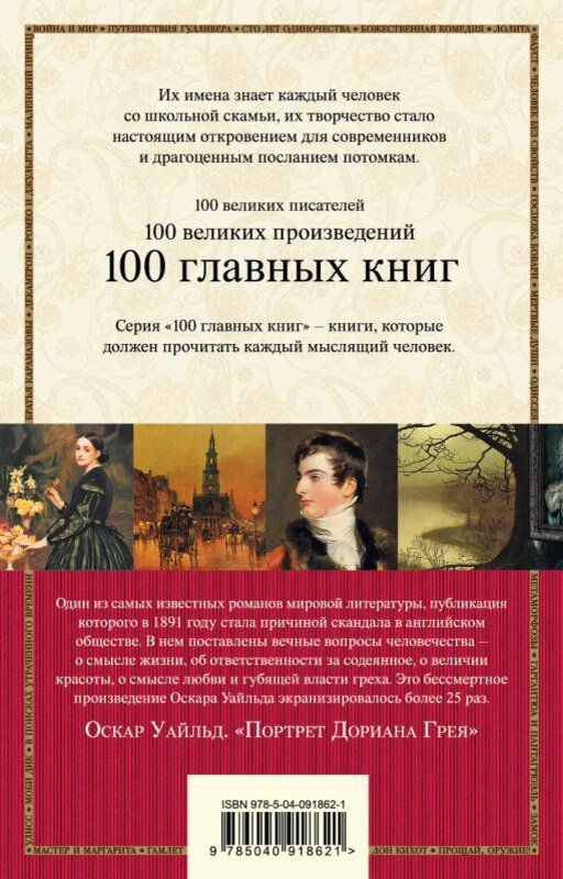 Об этой же книге пишет еще более известное издательство Эксмо:"Портер Дориана Грея" - самое знаменитое произведение Оскара Уайлда, единственный его роман, вызвавший в свое время шквал негативных оценок и тем не менее имевший невероятный успех. Главный герой, красавец Дориан, - фигура двойственная, неоднозначная. Тонкий эстет и романтик становится безжалостным преступником. Попытка сохранить свою необычайную красоту и молодость оборачивается провалом. Вместо героя стареет его портрет - но это не может продолжать вечно, и смерть Дориана расставляет все по своим местам. Роман Оскара Уайлда продолжает быть очень актуальным и сегодня - разве погоня за вечной молодостью не оборачивается потерей своего истинного лица?