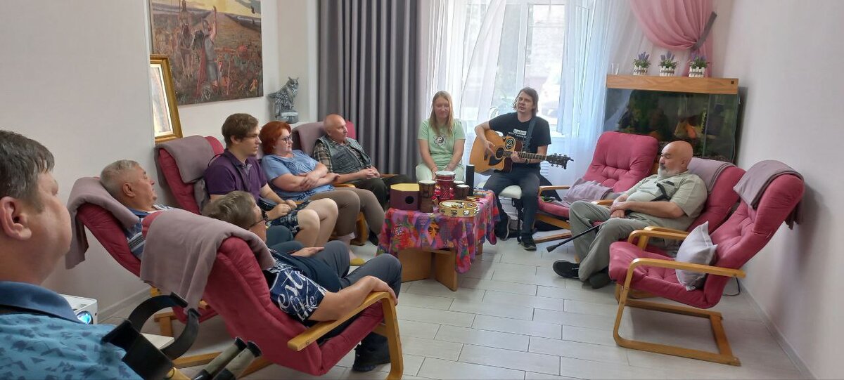 17 июля в 14:00 в КГБУСО «Центре социальной реабилитации инвалидов и ветеранов боевых действий» состоялся открытый музыкальный мастер-класс для получателей услуг. В рамках мастер-класса участники оркестра музыкотерапии «Импровиз» под руководством Астахова Ивана, рассказали об инструментах, поделились опытом создания уникальных музыкальных историй без специальных навыков и образования. Каждый из присутствующих смог выбрать для души инструмент и в едином потоке сыграть общую мелодию. За счет различных инструментов хорошо знакомые мелодии приобретали новое звучание. Все присутствующие играли, пели, расслаблялись и были сами собой! Также для всех присутствующих были презентованы возможности современной сенсорной комнаты. Импровизационный музыкальный оркестр организовался из инвалидов, ветеранов боевых действий, участников специальной военной операции и членов их семей! Музыкотерапия – эффективный метод социальной реабилитации, способствующая внутреннему расслаблению, формированию устойчиво