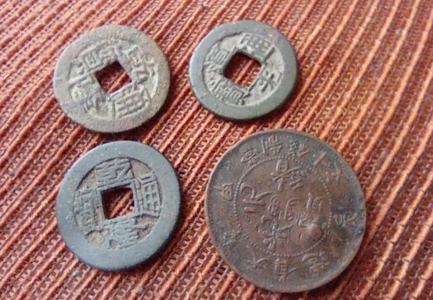 Вот такие старинные китайские монеты имеются у меня в закромах. Это не все. Еще две монеты с квадратной дыркой я подарил как сувениры, так как "по фен-шую" эти монеты приносят счастье. И еще есть одна серебряная китайская монетка, но она с большим механическим дефектом - кто-то хотел изготовить из нее кольцо. Чуть попозже я ее покажу, пока не могу отыскать. Монетки являются самыми обычными огородными находками. Мне доводилось видеть и другие китайские монеты, найденные тут у нас непосредственно за Уральскими горами самыми обычными садоводниками и огородниками. Могу сказать, что какой-то невидалью эти монеты не являются. Но при всём при этом есть большой вопрос- "Откуда эти монеты вообще могли появиться тут?". Вообще, иностранные монетки встречаются. Чаще всего почему-то немецкие конца 19-го и начала 20-го веков. Но их появление еще как-то можно объяснить. А вот китайские ... До границы с Китаем несколько тысяч километров. Я еще понимаю, если бы это была Восточная Сибирь или Дальн