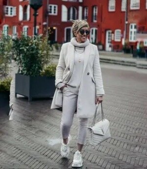 С возрастом вкусы к одежде и обуви начинают меняться. Уже не привлекают грациозные шпильки и классические лодочки, некоторые модели босоножек и туфель кажутся неудобными, а хочется выглядеть всегда модно, стильно и элегантно. Как подобрать модель современных кроссовок Итак, как говорилось выше, помимо того, что кроссовки должны быть: – удобными; – комфортными; – хорошо сидящими на ноге. Этим качествам соответствует большинство современных кроссовок известных брендов. Однако, как их эффектно сочетать, чтобы образ смотрелся лаконично, не вычурно и не слишком просто? Женщины возраста 40-50 лет ассоциируются с элегантностью и уверенностью в себе. Для создания модного образа сверху женщина может надеть эффектную блузку, на нее пиджак простого ровного кроя и нейтральных оттенков брюки, прямую юбку или джинсы также прямого кроя без лишних элементов. Такой стиль casual легко можно сочетать с современными модными кроссовками. Какие кроссовки эффектно дополнят этот образ? Прекрасно будут смот
