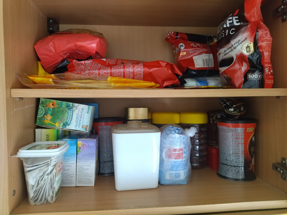 Решила я, раз уж нам надо запасы подчистить, провести ревизию и прикинуть, хоть примерно, что из этого можно готовить. Оказалось, все очень даже неплохо 👌 Чай - кофе есть, соль, сахар, специи тоже. Крупы, макароны, масло, консервы имеются. Молока много Картошки немного есть, вчера вот друзья заезжали, кабачками угостили. Так что жить можно. Кабачки, кстати, сразу в дело пустила (не все), решила вафли из них приготовить. Морозилка полна. С одной стороны это, конечно, хорошо, с другой не очень - тащить все с собой при переезде 🙈 Поэтому да, решено окончательно и безповоротно, в морозилку специально ничего не запасаем и по максимуму стараемся ее разгрузить. Ну, сказано - сделано. Завтрак у нас именно оттуда. Еще с вечера переложила в холодильник вот такую лепешку с начинкой. Когда-то делали заказ в местной пиццерии, и вот ее, бедную, не съели. Зато сейчас у нас есть прекрасный завтрак. Поделилась с мужем, мне хватило половины, он ещё бутерброды ел. Дети такое не едят, им ка