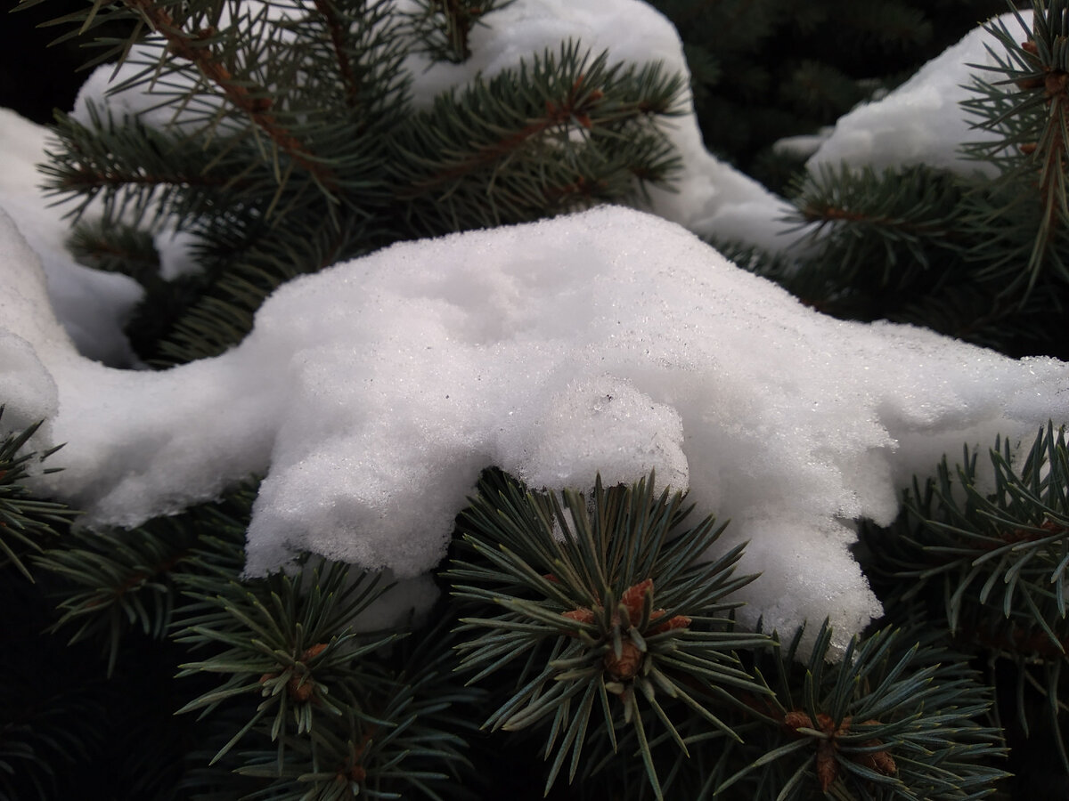 Из-под белого снежного одеяла лес проглядывает только немного, самыми краешками чёрных голых ветвей. Скрюченные и чёрные, они сиротливо торчат из-под пушистого и тёплого наружу. Так и хочется их укутать, обезопасить от холода уходящей зимы.