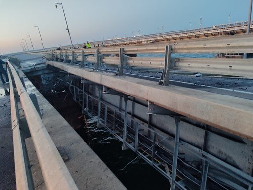 Президент России Владимир Путин возложил ответственность за теракт на Крымском мосту на власти Украины. Хуснуллин назвал сроки возобновления частичного движения по Крымскому мосту «Произошедшее - это очередной террористический акт киевского режима», - сказал глава государства в ходе совещания, посвященного ситуации на переправе. Путин анонсировал ответ на теракт. Он отметил, что подготовкой соответствующих предложений занимается Министерство обороны. Ранним утром 17 июля Крымский мост атаковали два украинских надводных беспилотника. Повреждения получила автодорожная часть переправы. Погибли двое человек. Раненого ребенка доставили в реанимацию, сообщает «Радиоточка НСН».