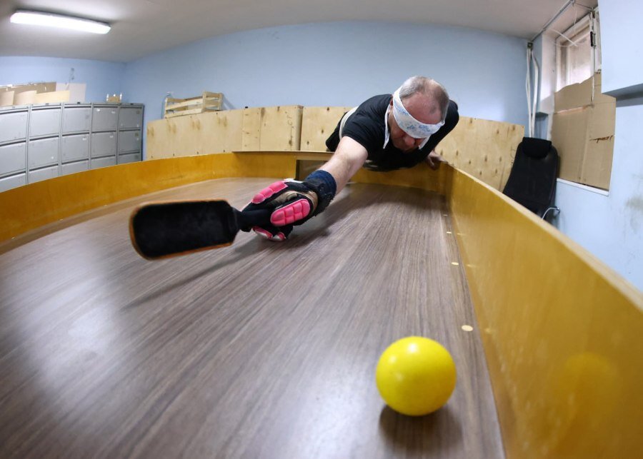 Сам мячик, к слову, гремит при движении, поэтому спортсменам проще сориентироваться. Дополняют набор специального оборудования деревянные ракетки, не поглощающие звук, и специальная перегородка посередине стола – аналог сетки при игре в обычный настольный теннис.
