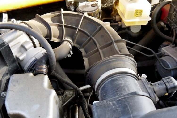 - Патрубок воздушного фильтра. Резиновая или пластиковая «кочерга», установленная до дроссельной заслонки.