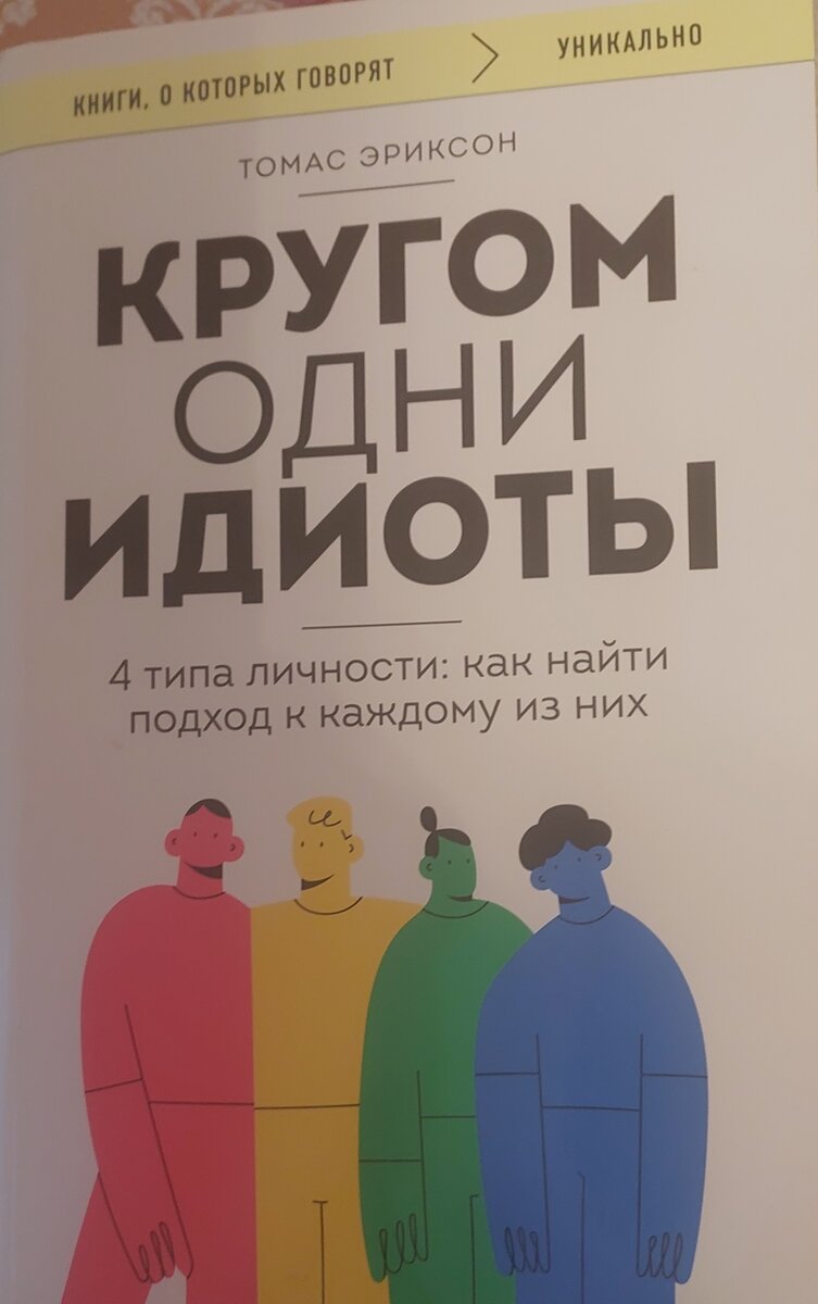Поэтому во многом книга знаменитого шведского психолога Т. Эриксона " Кругом одни идиоты. 4 типа личности:как найти подход к каждому из них " и основывается на различии людей. Интересно, что в ней он делит людей на 4 цветовых типа. Только взяв в руки книгу, я то и дело напевала про себя песенку при ее чтении: