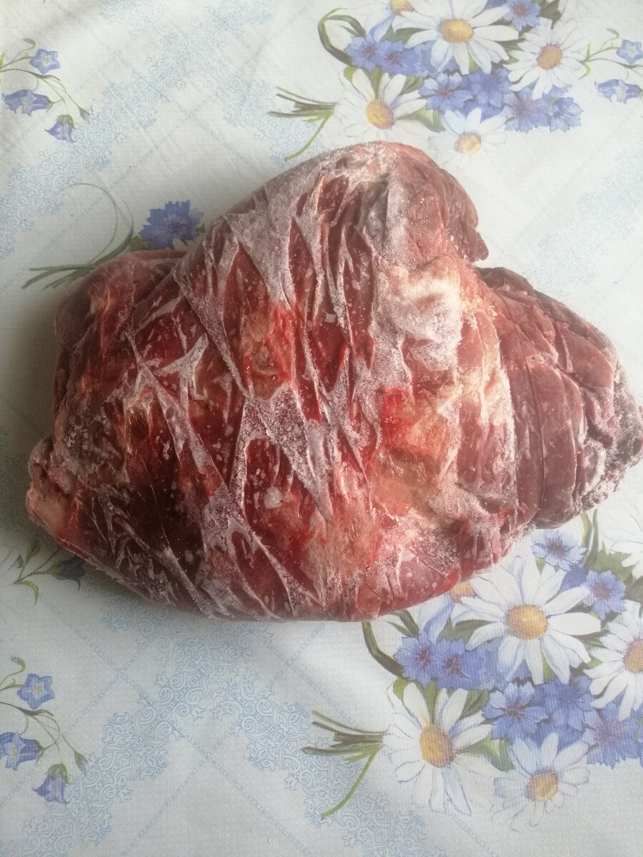 Воскресный ужин должен как-то выделяться среди череды обычных приёмов пищи в будние дни. Но поскольку времени стоять у плиты целый день все равно нет, решили запечь в рукаве окорок дикой косули. Запекание в духовке имеет массу преимуществ. Экономит время и силы. Пока еда готовится можно заниматься другими делами или о божечки, отдыхать. В приготовлении не используется масло или жир, как при жарке. А вкус получается более насыщенный, чем при варке. И посуда. Посуда тоже экономится, мясо съели, рукав выбросили. Итак, достала из морозилки окорок. Налила в миску литра 3 воды и растворила в них 5 столовых ложек соли. Погрузила мясо не размораживая. Оно в воде и разморозилось, и вымочилрсь, и просолилось. Лежало всю ночь до утра. Утром вытащила из воды. Срезала плёнки и все, что мне не понравилось. Ножом сделала проколы и по лезвию ножа в эти проколы протолкнула зубчтки чеснока. Использовала 2 средних головки чеснока. Снаружи обмазала приправами и соевым соусом. Приправы все, котор