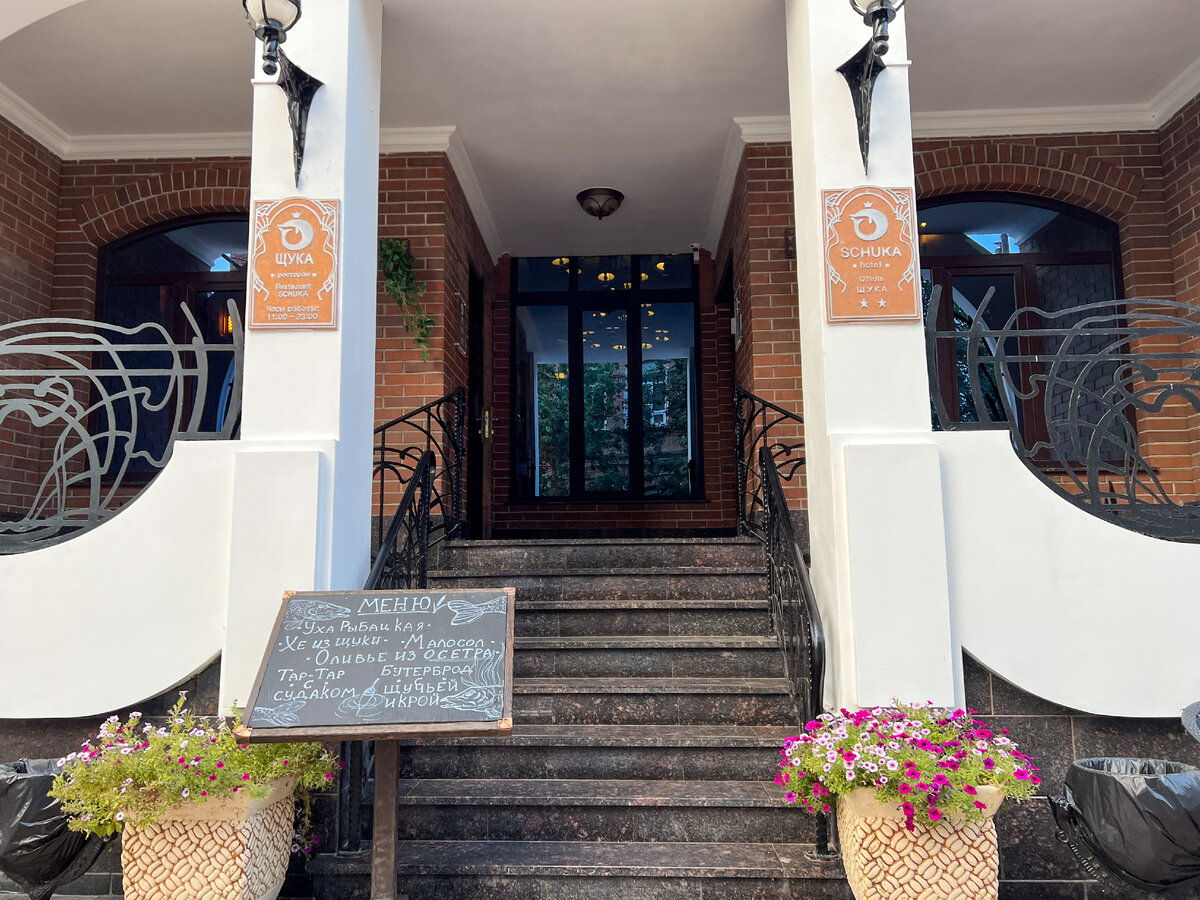 Неделю назад мы были в Астрахани и наслаждались местной кухней. Признаюсь – я уже по ней скучаю! Обожаю рыбу! Сегодня покажу вам ресторан, в который точно надо зайти, если тоже окажетесь в тех краях. Что за заведение? Это ресторан "Щука". В этом здании находится и отель с таким же названием. Сам ресторан двухэтажный. А еще на их сайте пишут, что ресторан «Щука» вошёл в число 10% лучших ресторанов мира по мнению пользователей Tripadvisor. Серьёзно! Что по кухне? Местные говорят, что именно здесь можно попробовать настоящую астраханскую кухню. В меню, конечно, много блюд из разной рыбы, которую здесь ловят: щука, судак, осётр, сом, сазан и т.д. Всей не перечислить! Вот так выглядел наш стол: Здесь: балычки холодного копчения (ассорти), хе из щуки, икра из щуки с мини-оладушками и еще много еды, которая не вошла в кадр. А еще местные наливки, которые ресторан делает сам: Мы были большой компанией, не вдвоём всё это ели) Вот так выглядит бутерброд с икрой по-астрахански: оладушек, смет