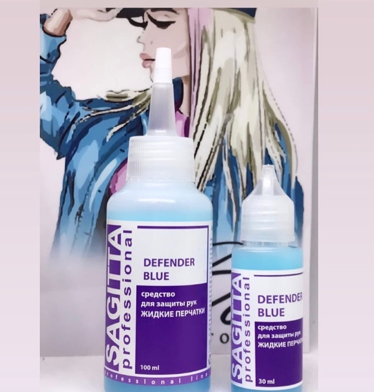 Жидкие перчатки средство для защиты рук (Defender blue) “Sagitta”. Инновационное многофункциональное средство для защиты рук мастера при проведении процедур маникюра и педикюра. Новая формула геля создаёт КОМФОРТНУЮ для работы тончайшую, активную, защитную плёнку на поверхности кожи. Эффективно защищает кожу в течение 2 - 4 часов после нанесения. Обладает широким спектром биоцидной активности. Смягчает и увлажняет кожу рук. Применение: нанести на чистую и сухую кожу рук необходимое количество геля и распределить массажными движениями до полного впитывания. После процедуры тщательно вымыть руки тёплой водой с мылом. В случае контакта со слизистыми оболочками и глазами промыть большим количеством воды. Состав: : изопропанол, вода, бутиленгликоль, глицерин, PVP/VA сополимер, Д-пантенол, аллантоин, акриломидметилтаурат аммония/VP сополимер, эфирное масло мяты перечной.