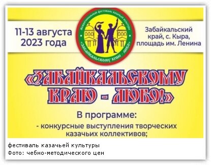 Межрегиональный фестиваль казачьей культуры пройдёт в селе Кыра с 11 по 13 августа
