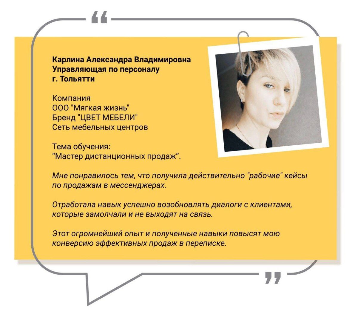 Делюсь отзывами первых студентов «Университета мебельных профессий», которые прошли обучение по программе «Мастер дистанционных продаж»: Старт отличный 🙌! А мы продолжаем набор студентов на следующий поток, который будет посвящён качественному выявлению потребности у потенциальных клиентов. От этого этапа зависит финансовый результат магазина, студии, а иногда и всего бизнеса.