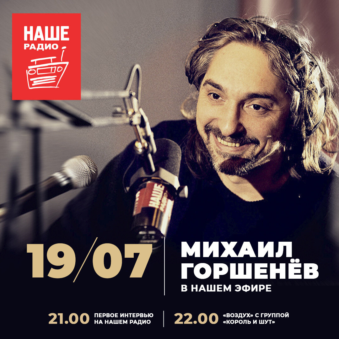 19 июля 2013 года не стало Михаила Горшенёва. В десятую годовщину смерти лидера группы «Король и Шут» НАШЕ Радио почтит память музыканта в эфире и на сайте. В течение всего дня в НАШЕм эфире будут звучать песни группы «Король и Шут» с комментариями Михаила Горшенёва. А на вечер мы оставили самое интересное — раритетные записи! В 21:00 мы поставим полную версию первого интервью музыканта в НАШЕй студии, которое состоялось в 2000 году. А в 22:00 будем наслаждаться первым живым выступлением «Короля и Шута» в студии программы «Воздух» на НАШЕм Радио. Этот часовой концерт был записан в 2001 году. На НАШЕ.ру можно будет посмотреть лучшие материалы, посвященные жизни и творчеству Михаила Горшенёва — почитать избранные цитаты музыканта, узнать истории из его детства, послушать любимые песни Горшка, ностальгировать под архивные выступления и пройти тесты о «Короле и Шуте».