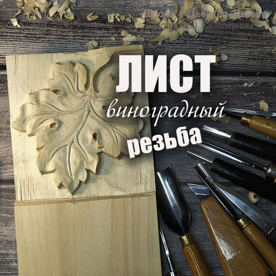 Доброго времени суток, уважаемые резчики. Проработала для вас виноградный лист. Несложно, но как всегда есть нюансы. Вперёд! Использованные инструменты. Наносим рисунок. Вы можете взять этот лист, распечатать и перевести на дерево через копирку, или же аккуратно перевести через кальку с экрана компьютера. Прорезаем контур ножом-косяком. Традиционно сначала идёт первая подрезка со стороны фона всё тем же ножом. Начинаем подкапывать фон любой небольшой полукруглой стамеской. Постепенно этой же стамеской снимаем фон по всей площади доски. Выравниваем фон плоской стамеской. Я сделала глубину фона около 1 см. Но это уже на ваше усмотрение. Далее один из ответственных моментов. Маленькие но глубокие выемки с плоским дном. Вы можете прорезать контур, а затем аккуратно выкопать углубление и выровнять дно вот такой стамеской. Прямая плоская стамеска шириной 2 мм. Или же сделать эти углубления бормашиной. Вот такой фрезой в форме цилиндра. Далее находим места перепада высот в листе. Это моменты,