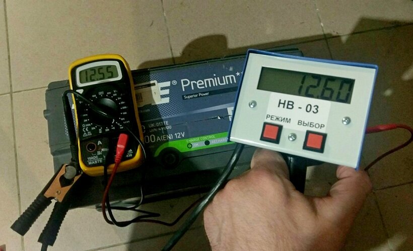 Мультиметр показывает текущий вольтаж и ампераж АКБ. Если на дисплее появились показания, которые соответствуют стопроцентному заряду, это не значит, что аккумулятор в порядке. Достаточно дать небольшую нагрузку, чтобы АКБ моментально разрядилась. Такое напряжение может создавать контрольный прибор. Ниже будет инструкция на примере модели Orion HB-03.