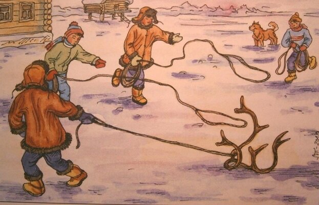 Наверняка, у каждого была любимая игрушка. Что же это было: поезд? Кукла? Или плюшевая собака? Сегодня ассортимент магазинов игрушек невероятно богат, и ребенок может выбрать то, что ему больше нравится. Но как же выглядели игрушки и игры в давние времена? Давайте разбираться! Знания, дошедшие до нас, связаны с небольшими народами, проживающими на Дальнем Востоке и в Сибири. Эти народы (ханты, манси, эвенки) по крупицам сохраняют данные о занятиях и игрушках, которыми играли дети много столетий назад. Как и у современных детей, излюбленным делом и мальчишек, и девочек, была игра в мяч: его перекидывали друг другу; пинали, определяя, самого меткого игрока; бросали вверх; и играли в подобие футбола – прикасаться, в таком случае, к мячу руками было строго запрещено. Правда, мяч выглядел совсем иначе, ведь делали его из зоба диких птиц (зоб – это один из птичьих внутренних органов). Его высушивали, набивали соломой, смазывали животным жиром, чтобы не треснул, и получалась долговечная игруш