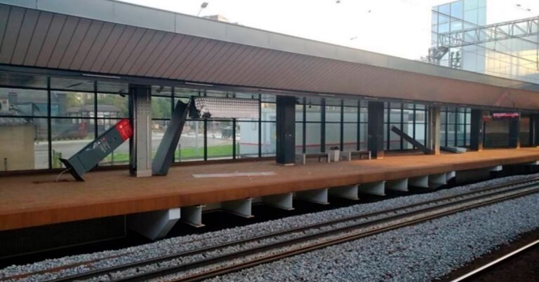 Перевозивший рельсы поезд снес колонны и стекла по всей платформе станции «Матвеевская»