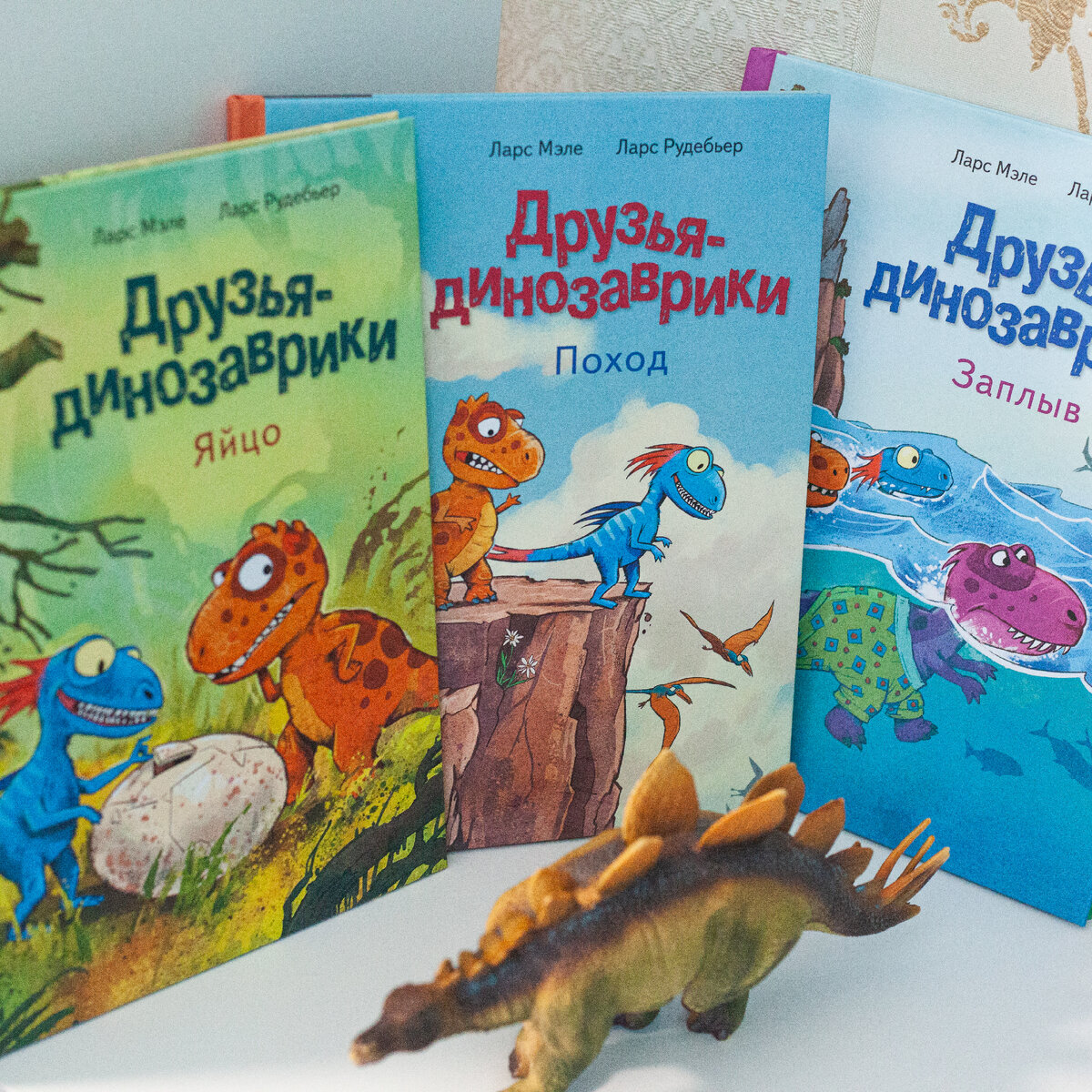 Если у вас дома в каждой комнате валяются резиновые трицератопсы и тираннозавры, ребенок обожает мультики и передачи про ящеров, а вы уже устали читать ему из энциклопедии про то, что едят диплодоки, то у нас есть для вас что-то интересное! Это серия "Друзья-динозаврики" норвежского писателя Ларса Мэле. В стране Динозаврии живут со своими семьями тираннозаврик Расмус Рекс и его лучший друг Трим Троодон. Каждая из книг серии рассказывает об одном дне из их жизни. Трим - настоящий искатель приключений, а Расмус ведет себя как трусишка, но всегда следует за другом: хоть в поход, хоть в Черную Бухту к затонувшему кораблю... Всего в серии мы издали 6 книг (и это еще не конец!). "Яйцо". Скоро у Трима появится братик или сестричка, и вместе с Расмусом он спешит домой. Чтобы сократить путь, друзья отправляются через опасный болотный лес, ходить в который им строжайше запрещено... "Заплыв". Расмус, его старший брат Робин и Трим устраивают заплыв, чтобы выяснить, кто быстрее доберется до острова