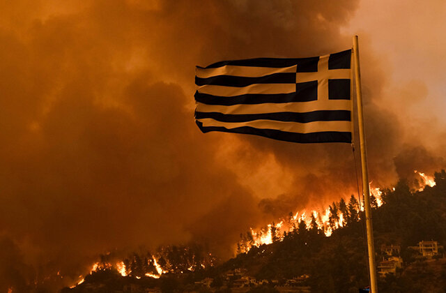 Экстремальная жара на юге Европы вызвала сильнейшие лесные пожары в Греции. Площадь территории страны, охваченной огнем, сильно превысила средний показатель за последние 16 лет. Самые большие разрушения наблюдаются на островах Родос, Корфу и Эвия. Там жители и туристы ищут убежища, пока пожарные борются с огнем, а службы спасения эвакуируют людей подальше от опасности. Многие отдыхающие улетели домой. За два дня только Родос покинули более 19 000 человек, и эвакуацию из-за нынешних лесных пожаров называют самой масштабной в истории Греции. Авиакомпании и турфирмы отменяют рейсы и путевки на острова до конца июля. На многих видеороликах небо над островом Родос окрашено в оранжевый цвет Вслед за Родосом пламя охватило остров Корфу Метеорологи говорят, что нынешняя волна жары в Греции станет самой длительной с 1987 года, когда аномальное тепло по всей стране сохранялось 12 дней. В ближайшие дни в некоторых регионах прогнозируется температура до 44°С. Пожары также бушуют в Турции и на Севе