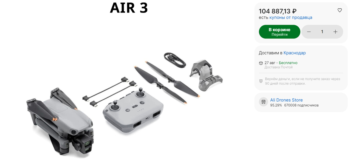 А вот, кстати, и DJI Mini 2 Pro предлагаемый в этом магазине: