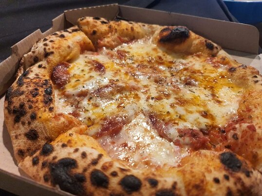 Но главное, это конечно тесто, с зарумяненной воздушной корочкой с неровных краёв, местами чуть сгоревшими, что естественно от живого огня, стекает в центр начинка под плавленым сыром. Отчего так тепло на душе.