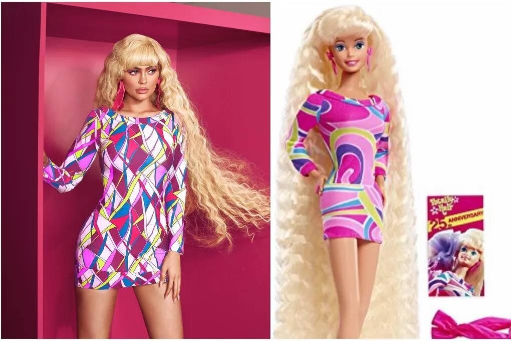 Еще на прошлый хэллоуин Кайли Дженнер поделилась серией фотографий на своих официальных аккаунтах в социальных сетях, где она превратилась в живую версию Барби. Каждый косплей точен в деталях, и она мастерски воссоздает образы культовой куклы, которая стала символом стиля и моды для многих девочек и женщин.