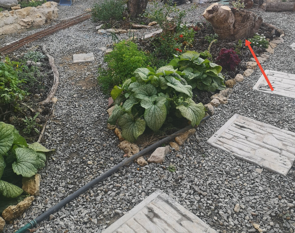 Ну, как клумба? Не сказать, чтоб прям полноценная, но места там достаточно, чтобы посадить садовый портулак. Помните, я писала, что спиливала часть ствола "вонючки"? Хотела весь спилить, да передумала, решила тоже под цветы использовать остаток пня, а спиленная часть валялась, ждала своего часа, все не могла придумать, куда именно её приспособить. Все решилось, когда выкопала ромашки, на их место посадила тис и сразу возникло понимание, как можно сделать дальше. Для начала я выкопала герань, поднадоела она мне, хотя и зимой вроде зелёная, но что-то не то. Посадила в другое место. А вместо неё поставила пень Фото немного темноватые, нужно фотографировать рано утром, все остальное время у меня солнце - южная часть, поэтому фотографии аж засвеченные получаются, нужно согнуться в три погибели, чтоб солнце в кадр не попало. В самом пне уже были две достаточно глубокие дыры, которые я засыпала землёй и посадила портулак Надеюсь, скоро разрастется. На следующий год я там поселю какие-ни