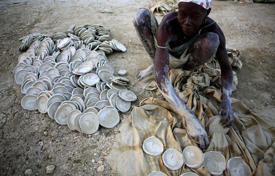 Доброе утро из Австралии! Сегодня вновь - о карибском государстве Гаити, к сожалению, беднейшем в мире. ЛЕПЁШКИ ИЗ ГЛИНЫ Вы знаете, какое блюдо является самым дешёвым в Гаити? Страна считается самым бедным государством западного полушария. С каждым годом цены растут, при этом доходы большинства не превышают 2$ в день.. Крупы - непозволительная роскошь для многих. И из-за голода в республике появилась целая индустрия выпечки лепёшек из.... глины! Их делают из относительно чистой глины, покупаемой с центрального плоскогорья. Но и такой "подножный корм" не достаётся людям бесплатно! Чтобы сделать тесто, глину замешивают с водой и солью. Бывает, добавляют маргарин и овощи, но это происходит крайне редко.. Потом на день тесто выкладывают небольшими лепёшками под солнце, где они сохнут. Такую еду вряд ли можно назвать вкусной, но она дешёвая и помогает людям выжить... А вы попробовали бы такое?