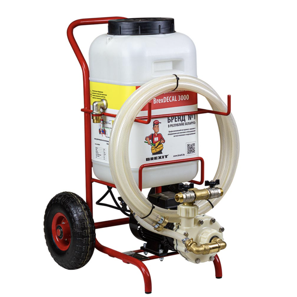 Промывочный насос – это профессиональное оборудование, предназначенное для промывки и очистки бойлеров, котлов, систем охлаждения, выпарных установок, инженерных систем отопления от ржавчины и различных отложений. С помощью таких устройств можно продлить срок службы системы, предупредив образование засоров и поломку из-за накипи на стенках. Компания BREXIT выпускает насосы для промывки BrexDECAL 3000 и BrexDECAL PRO 3000. Всю информацию об устройствах мы собрали в видеообзорах, которые регулярно выходят на YouTube, Rutube и Яндекс.Дзен. Подписывайтесь на наши каналы – и следите за обзорами на другие инструменты и оборудование из каталога нашего интернет-магазина. Характеристики промывочных насосов Промывочные установки BREXIT комплектуются шлангами по 2 метра. Они изготавливаются из прочного материала – полипропилена, с помощью литья высокого давления. Благодаря этому химическое вещество – реагент – не деформирует шланг. Удаление отложений происходит благодаря циркуляции и возможности