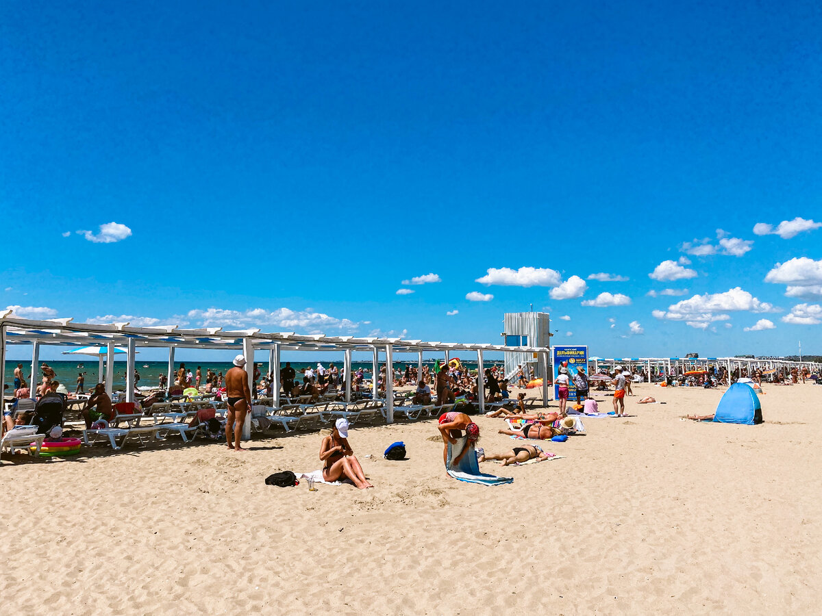 Во время вчерашнего посещения анапского центрального пляжа я ожидал увидеть толпы отдыхающих людей и отсутствие места на песке. Ведь именно о том, что на пляже нет мест, писали во многих СМИ и даже прикладывали видео-доказательство! Я уже был готов снимать эти толпы, но меня ждало разочарование. Людей на центральном пляже оказалось совсем немного, а ту "страшную" картину, с огромным количеством отдыхающих, создают только определенные небольшие участки центрального пляжа. Разве на следующей фотографии видны толпы людей? А ведь это район центрального пирса. Это именно тот самый центральный анапский пляж, "центрее" некуда! Где эти столпотворения людей, если даже у кромки моря, рядом с вышкой спасателей полно места? Большое количество шезлонгов стоят абсолютно невостребованными, сложенными аккуратными стопками. Людей тут действительно не много! Но если вы посмотрите на море, которое своими маленькими волнами накатывает на песок центрального пляжа, вам станет понятно, почему тут не может бы