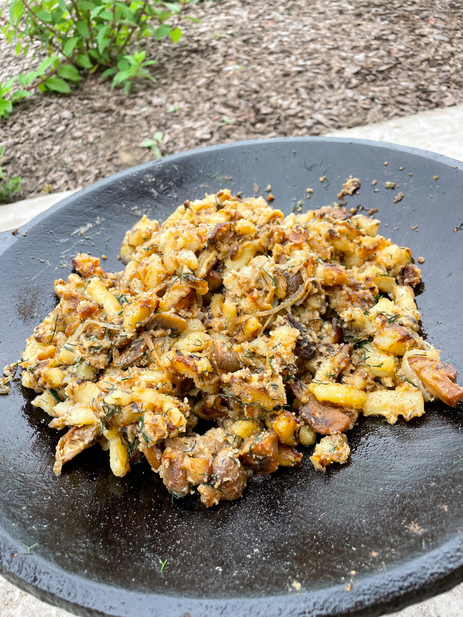 Никого не удивлю этим блюдом, но как идею для ужина оставлю тут!) Мы готовили на чугунной сковороде - садже, но можно и на обычно плите приготовить) Ингредиенты: ⠀ Обжарить грибы на растительном масле и убрать в отдельную миску. Обжарить картошку до румяной корочки, добавить лук, нарезанный полукольцами, посолить, поперчить, добавить сухой чеснок. Обжаривать еще минут 10. Грибы вернуть на сковородку, добавить сливочное масло по желанию. Затем добавить сметану, хорошо перемешать и всё вместе потушить 5 минут. В конце посыпать зеленью. Приятного аппетита ❤️ Ниже видеорецепт)