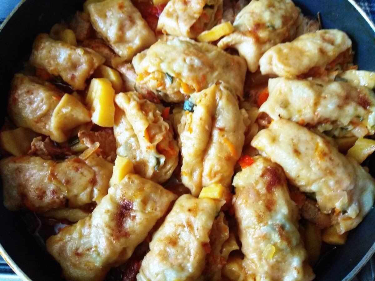 Удивите семью и приготовьте сытное казахское блюдо «КОНДЮБЕ» - это мясо, картофель, овощи и рулетики из теста