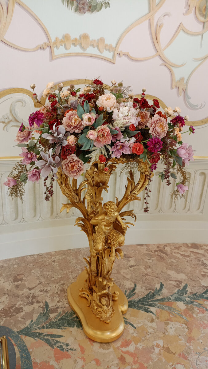 Обратите внимание на фарфоровые фигуры, которые стоят на столе-консоли и на столиках. Это аллегории четырёх различных частей света. Европа, Азия, Африка и Америка.