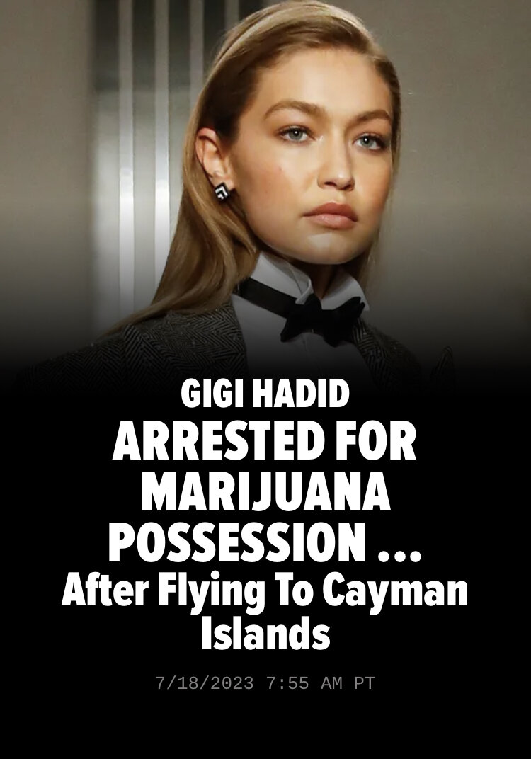 По информации TMZ - Джиджи Хадид была арестована при досмотре по прилету на Каймановы острова за провоз Мари***ны Как сообщается - Джиджи отпустили, она смогла доказать, что марихуана была приобретена в исключительно медицинских целях.