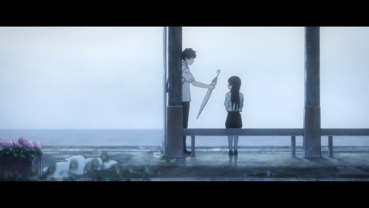 Я сожалею только о том, что не посмотрел это аниме раньше. Сразу скажу, что тут я просто расскажу то, как я вижу данное аниме и что чувствовал, пока его смотрел. Это очень милая и одновременно с этим грустная история. Однажды, молодой парень возвращаясь домой со школы в проливной дождь встречает девушку, одиноко сидящую на остановке. Он просто предложил ей зонт, а она очень нехотя его взяла. Так они и познакомились. Как дальше окажется, она новая одноклассница. Класс вроде и старался быть с ней дружелюбным, однако ей все это было не нужно. В один из дней даже дошло до небольшой драки, когда одна из учениц уронила книгу, которая почему-то так дорого главной героине. Дальше нам расскажут, что же такого важного в этой книге и почему она готова была драться за нее. Практически параллельно с этим, главный герой находит пещеру, в которой невероятно красиво. Он прогуливается в ней, как ни в чем не бывало. Пройдя вглубь, он находит босоножку, на подошве которой написано имя его покойной сестры