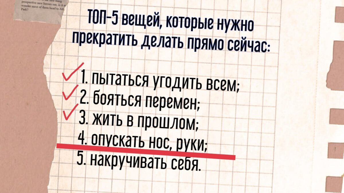 Ну, что же… Разбираясь в теме, что нужно прекратить делать прямо сейчас для достижения личного успеха, мы добрались до 4️⃣ пункта👇 🔷ОПУСКАТЬ НОС, РУКИ🔷 Когда у человека есть проблема хотя бы в одном из предыдущих пунктов, то уже сложно вопреки всему сохранять бодрость духа и находить силы двигаться к своей цели. А ведь на человека влияют и множество других проблем. И не со всеми можно справиться самостоятельно. Например, пытается угодить всем, а получает только обесценивание и пренебрежение. Или есть страх перемен и от малейшего отступления от намеченного процесса человек попадает в стресс и т.д. Причин, которые могут оказать сильное влияние на человека множество. И если у него нет поддержки или человек не допускает для себя возможность обращения к специалисту, то не опустить нос или руки сложно. Когда есть личностные проблемы, например, низкая самооценка, слабая целеустремленность ведь человек такой не просто от того, что сам виноват: унижения в прошлом, а может и в настоящем, п