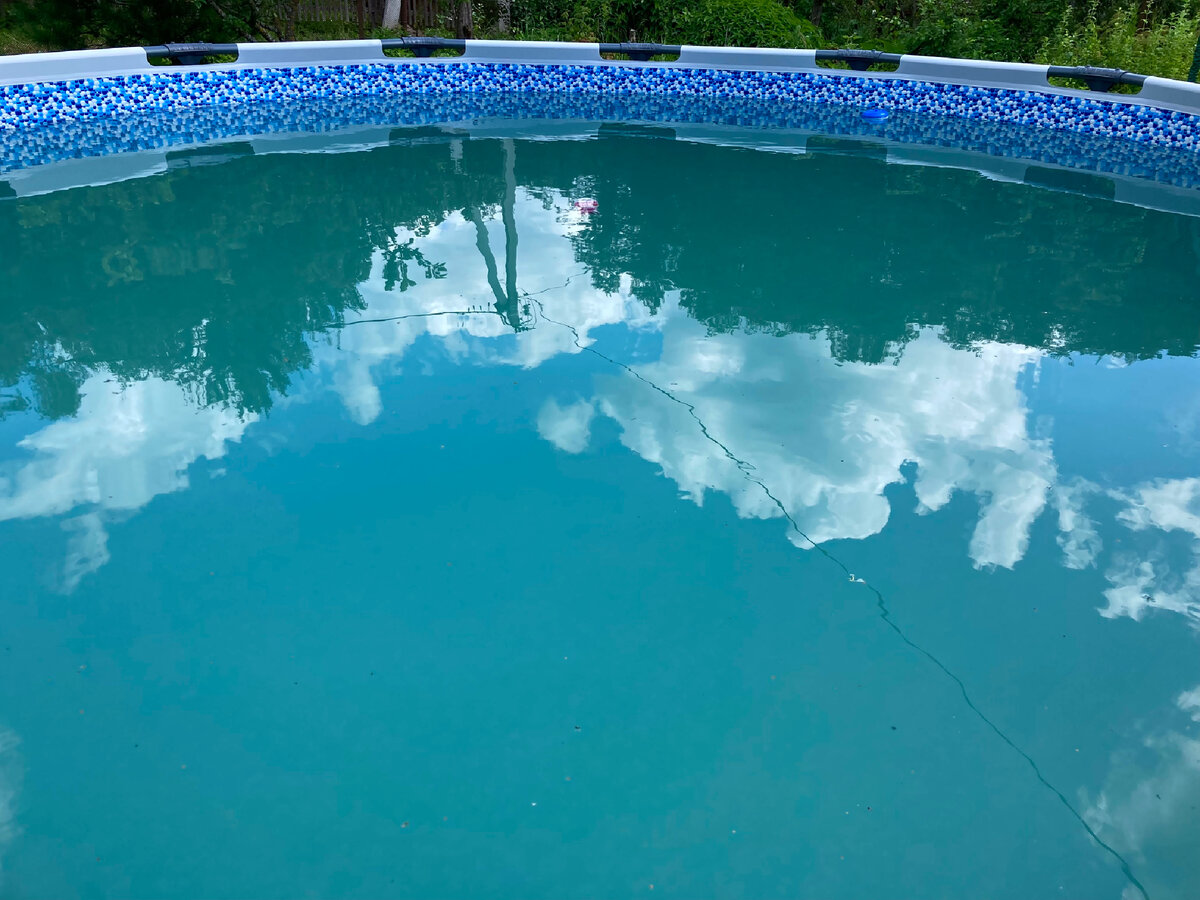 В понедельник наконец наладилась погода, до этого дожди были, бассейн стоял закрытый тентом, фильтр из-за дождя не работал. Сперва решила помыть тент. Там где он соприкасается с водой - образуется налет. Не додумалась только щетку для бассейна к этому процессу подключить. Дальше взялась за воду. Установила фильтр, к нему насадку с пылесосом - такого нагребла🤦♀️ Ладно, с жуками плавунцами я давно смирилась, просто вылавливаю их сачком и выбрасываю подальше, в надежде, что они не вернуться. Мотыль в таком количестве, что целый аквариум рыбок можно неделю кормить - тоже переживем. Главное он хорошо пылесосом собирается. Вот это все неприятно, но можно решить. А то, что в одном месте от воды неприятный запах был, сильно меня деморализовало. Наполнялся бассейн три недели, быстрее с моим колодцем не получается. Поэтому взять и все слить - слишком трудное решение. С другой стороны, ну хлорирую я воду, уберу грязь со дна, но фильтр у меня слабенький, с таким объемом быстро не справится.