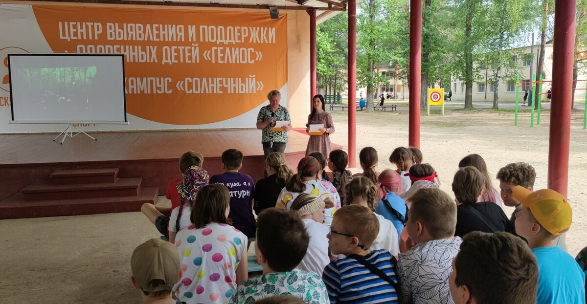 Сотрудники библиотеки посетили «Региональный центр выявления и поддержки одаренных детей “Гелиос”» в структурном подразделении лагеря «Солнечный». Для ребят провели интерактивную этноигру «Культурные корни» и литературный час о творчестве писателя Михаила Пришвина «Он солнце брал из кладовой». Мероприятия проводились совместно с Российским обществом «Знание» в рамках Всероссийского просветительского проекта «Знание. Лекторий». Интерактивная этноигра была посвящена истории Рязанского региона, культурным традициям татарских, славянских и финно-угорских племен. Воспитанники лагеря познакомились с татарским костюмом, узнали о национальном празднике татар – Сабантуе, вспомнили русские народные пословицы и поиграли в традиционные игры мордовских и славянских народов. На литературном часе сотрудники библиотеки рассказали младшим школьникам о биографии Михаила Михайловича Пришвина, многие произведения которого вошли в золотой фонд детской литературы. Ребята с удовольствием посмотрели отрывок и