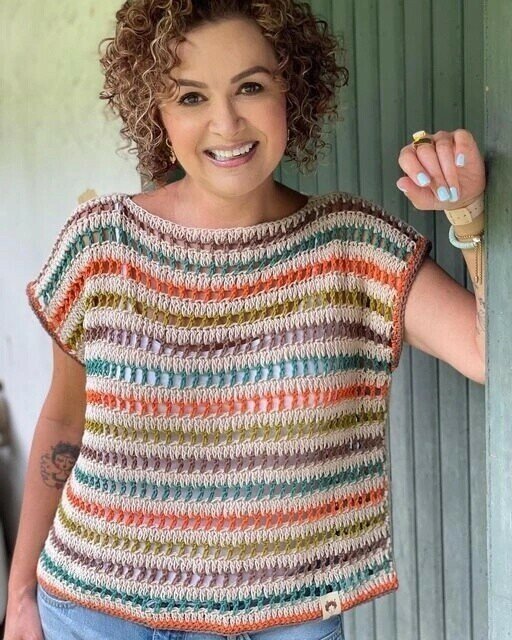 Отличный вариант кофточки на лето - узор прост, много пряжи не требуется, можно использовать остатки ниток. И шикарный вариант обновки готов. Схема вязания кофточки крючком до безобразия проста. Судя по верхнему фото могу предположить, что вязался топ из двух отдельных деталей, а затем сшивался по бокам и плечам. Можно упростить задачу и вязать по кругу, а сшить только плечи. Есть такой же вариант, но в другом основном оттенке А какой вам больше нравится - первый или второй?