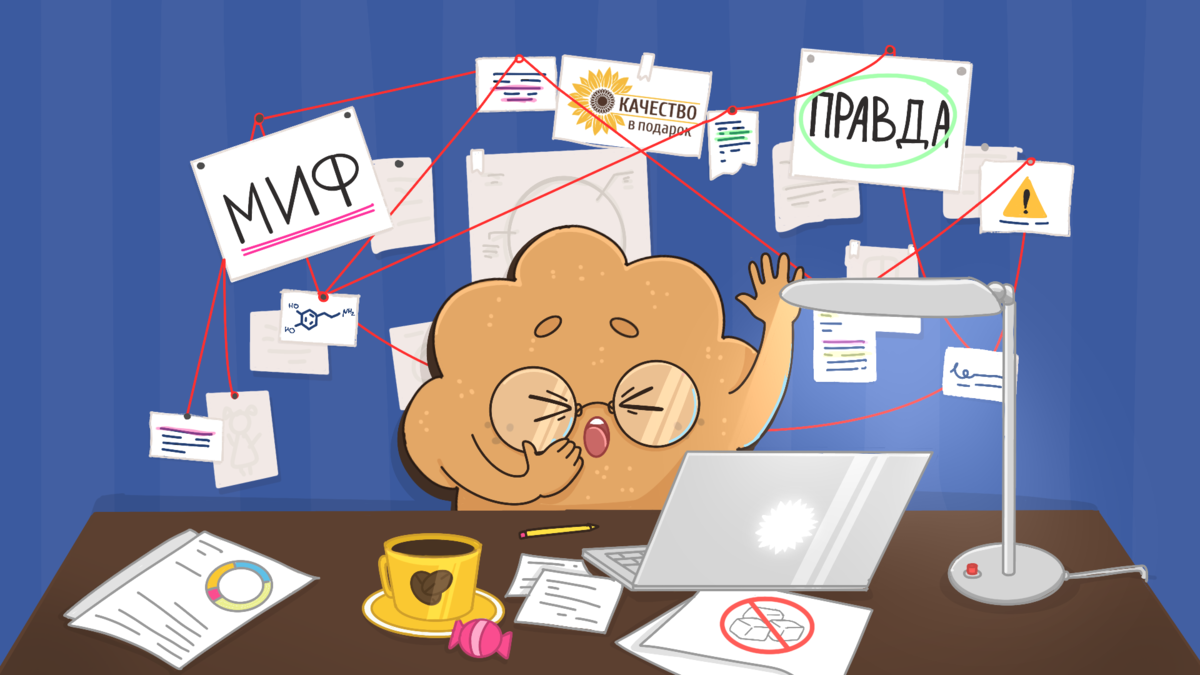 К сплетням все относятся по-разному. Одни злятся, когда о них говорят неправду, и яростно мифы опровергают. Например, пакетированные соки, о которых чего только не пишут, выпустили целую статью на эту тему. Другие над лживыми заголовками в прессе лишь посмеиваются и терпеливо объясняют, как дела обстоят на самом деле. Взгляните на Печенье «Мелкое» торговой марки «Веселый кондитер». Оно обожает читать информацию о себе в интернете и проверять, что из этого правда, а что — ложь. Давайте разберемся, где правда, а где миф о наших любимых сладостях! Некоторые говорят о сладостях, как о каких-то пиратах, которые берут людей в плен и вынуждают есть торты, пирожные и булочки против воли. Якобы, даже если человеку не хочется сладкого, он все равно не может остановиться и ест шоколадки целыми плитками, а в кармане всегда носит пару конфет. — Прямо как азартные игры или алкоголь? — удивились Печеньки. — Именно так, — ответили ученые. — Дело в том, что еда воздействует на центры удовольствия, р