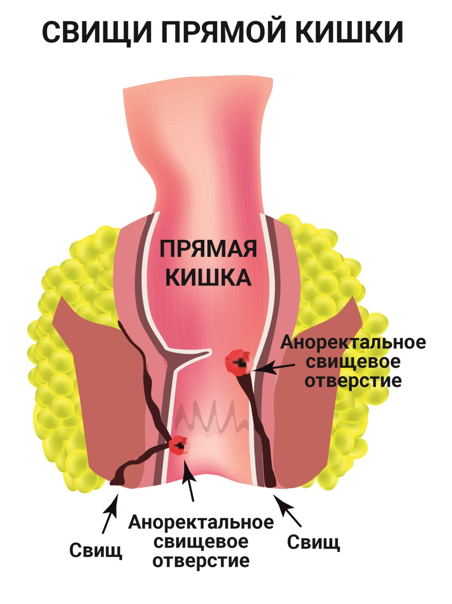 Свищ — это аномальное соединение между двумя областями, обычно не связанными друг с другом. Свищ может соединять два участка нерассеченного кишечника вместе или может соединять участок кишечника с кожей. Думайте о свище как о трубке; но трубка, которая не должна существовать при нормальных обстоятельствах. В случае анального свища соединение обычно находится между анусом и кожей ягодиц. Чаще всего фистула появляется, если какое-либо заболевание не лечить должным образом. По неизвестным причинам анальная железа может заразиться и попытаться избавиться от инфекции, проникая наружу, в кожу. Если он не может пройти весь путь до кожи, инфекция (гной) захватывается и образует абсцесс . Именно в это время проктологу необходимо проколоть (слить) гной через небольшой разрез. Если разрез не заживает, его теперь называют фистулой. Иногда гной может перемещаться на кожу и стекать самопроизвольно, но с тем же результатом; со временем он может зажить или остаться открытым в виде свища. Какие болезн
