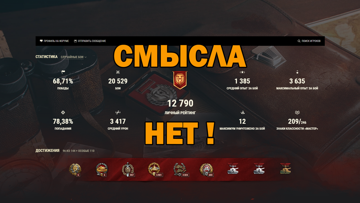 И вот представьте в Мир танков можно посмотреть, только, когда игрок зарегистрировался, в каком клане состоит, сколько часов отыграл и какие танки есть, ну и на каких играл сколько боёв. И всё. Никаких медалей, никаких средний уронов, никакой более конкретики. Давайте разберём этот момент и попробуем понять. что может произойти с игрой. Если никакой конкретной статистике не будет) Поехали! Бои будут идти по 2 минуты. Ну вот только представьте, игрокам не нужно париться насчёт статистики, её нет. Вот вы берёте танк ИС-3 с МЗ, например, нажимаете В бой и попадаете к 10 у