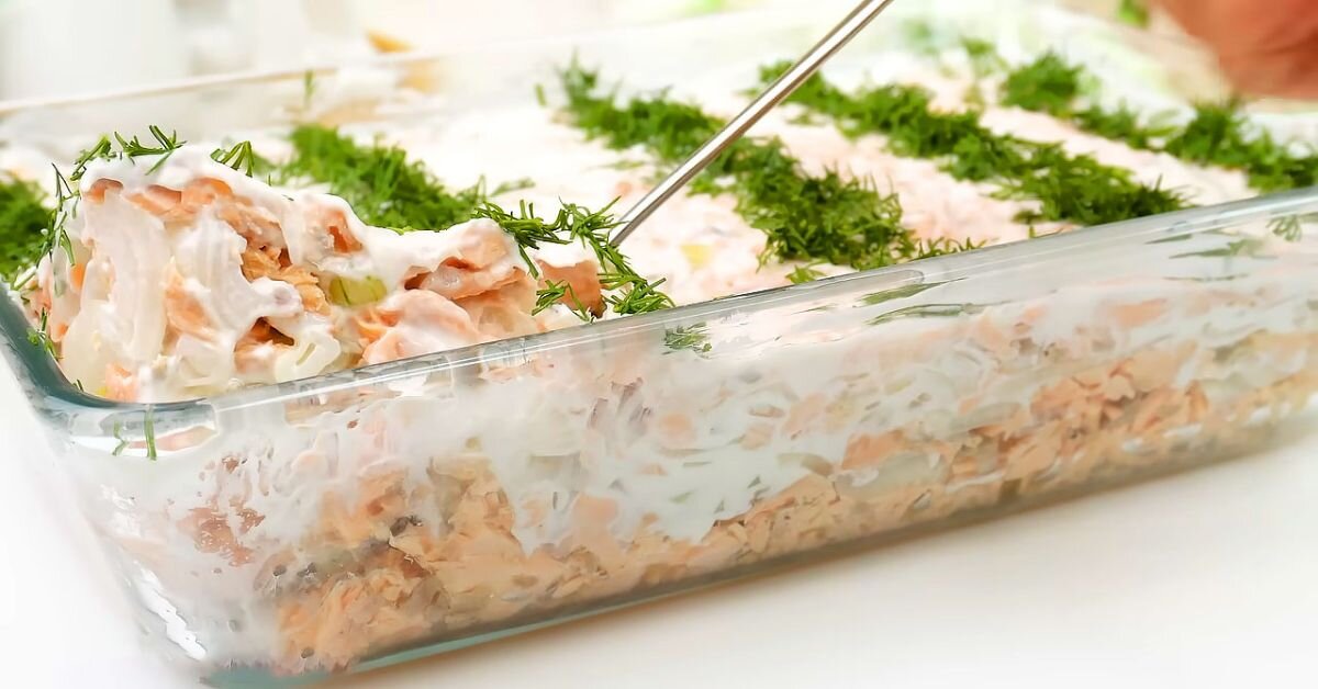 Каждый четверг в рыбном магазине возле нашего дома хорошие скидки на весь ассортимент. Соответственно, в четверг и пятницу мои домочадцы обогащают свои организмы полезными жирами и незаменимыми кислотами. Как только я не изощрялась: и стейки из хека запекала, и скумбрию засаливала, и рыбные блины крутила, и закуски различные выдумывала. Однако лучшим блюдом, по моему нескромному мнению, оказался простой, но очень достойный салат с горбушей. По сути, он состоит всего лишь из двух продуктов: репчатого лука и морской рыбы. Однако в результате ты получаешь невероятно мягкую, ароматную и сытную закуску, которую не зазорно подать даже самым прихотливым гостям. Многослойный салат из горбуши: моменты приготовления Совет: пока варится рыба, замаринуйте лук! Так на приготовление салата у вас уйдет не более 20 минут. В качестве соуса я использую домашний майонез, но вы можете взять и магазинный. Главное, чтобы жирность была не менее 50 %. Поверьте, эта сочная, вкусная и красивая рыбная закуска вл