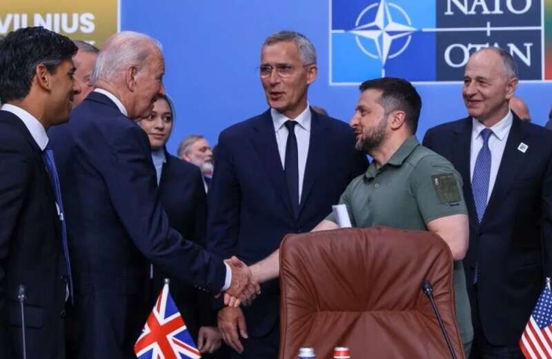 НАТО завершило саммит обещаниями безопасности Украине, а Байден, постоянно падающий и путающихся, обвинил Путина в жажде захвата земель и власти. НАТО, самая могущественная военная структура, предложила минувшей средой Украине новые гарантии безопасности, пишет ufatimes. Обещания прозвучали после вторничного заявления Зеленского, возмутившегося, что альянс обошел вопросы приглашения или графика вступления Незалежной в организацию. Ведь Зеленский настаивал на скорейшем приемы Украины в НАТО. Однако, на дороге встали члены G7, предложившие начать двусторонние переговоры касательно оказания республике военно-финансовой помощи. Горькую пилюлю подсластили обещаниями предоставления разведданных и посулами немедленно вмешаться, после повторного нападения РФ. Закрывая саммит, Байден пригрозил Путину, который, как полагает американский президент, недооценивает решимость НАТО. Зеленский подхватил оптимистичные ноты хозяина Белого Дома, заявив: мы получили беспрецедентную и практическую поддержку