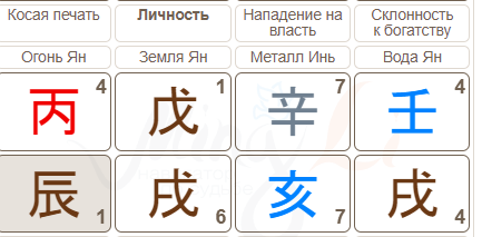Когда я увлеклась бацзы и первый восторг от того, как работает эта система прошел, оказалось, что объяснить закономерности в той или иной сфере по одному-двум элементам довольно сложно. Оно хорошо объясняется, особенно, если не известен час рождения, например, и вы не можете использовать систему дворцов или Ци Мень. Но все это в общих чертах, а хотелось большего. Сейчас посмотрим, как шаг за шагом можно посмотреть картину взаимоотношений в браке. Посмотрим карту слабой Янской Земли. В доме брака (земная ветвь дня рождения) стоит Собака, т.е. полезный для этой карты элемент друзей. Получается, что в муже хочется видеть такого же как ты человека, который станет в первую очередь другом, способным поддержать, разделить твои интересы, разделить обязанности по дому, по воспитанию детей, по финансовому обеспечению. Именно разделить, а не свалить все на кого-то одного. Получается муж и жена равны и в правах, и в обязанностях. Если бы не одно небольшое но... в карте 4 элемента Земли. То есть сл