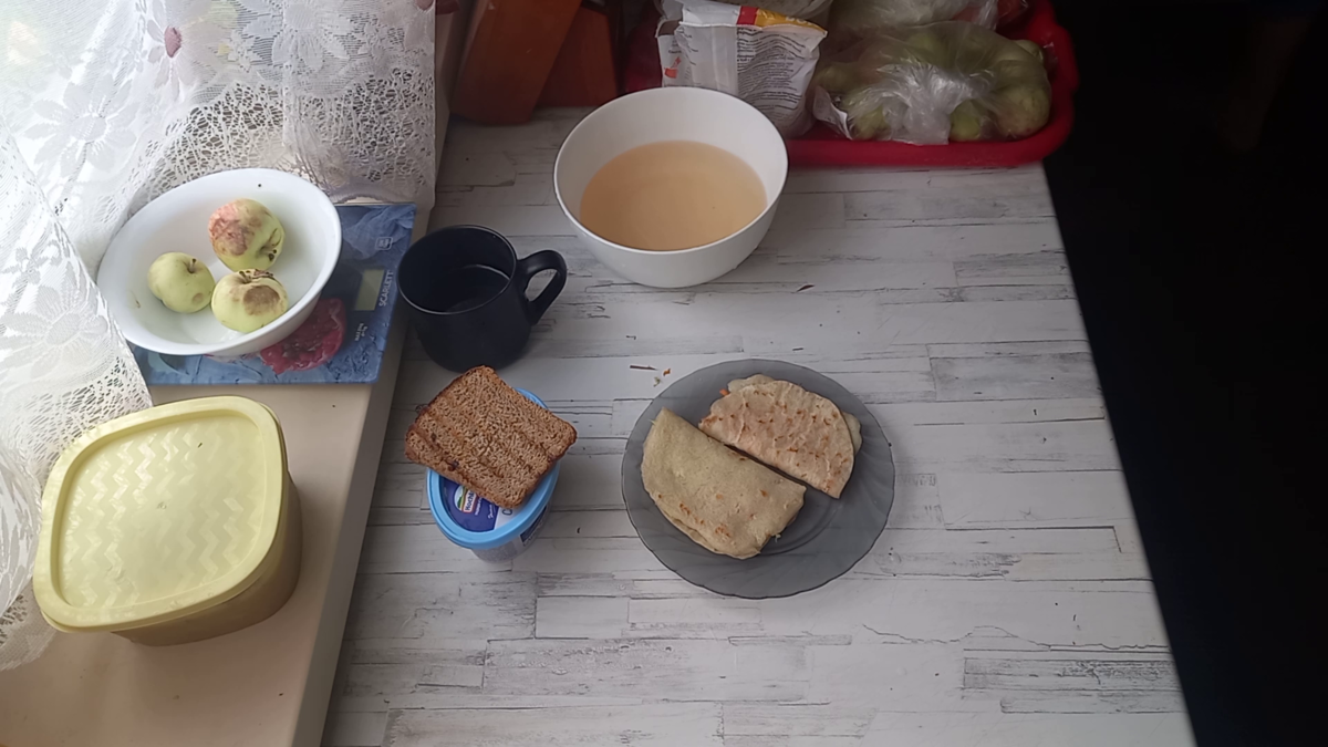 Третий день моего одиночного проекта «Неделя на 100 рублей». В принципе день тоже прошел нормально, но мой поднос с остатками продуктов вызывает у меня конкретное беспокойство. Я с ужасом понимаю, что оставшихся продуктов до конца недели мне может просто не хватить((( Но я не буду думать об этом сегодня, я подумаю об этом…….позже))) А сегодня у меня следующее меню. На завтрак очень захотелось блинов. Не стала себе в этом отказывать. Перемолола вермишель в кофемолке, залила полученную муку водой и сделала два блина. Один зафаршировала капустой, второй морковью. А потом поджарила их в гриле. Вкусные, хрустящие, с большой кружкой компота……ела и наслаждалась)))) Фото прилагаю: На обед тот же суп и ломтик поджаренного хлеба. После обеда ходила по делам и зашла на продсклад «Победа», нужно было прикупить кое-что из продуктов для семьи. И, о чудо!!! Целый контейнер листов капусты!!! Я даже непроизвольно облизнулась))) Уточнила у продавца судьбу вожделенных листиков, и узнала, что путь их леж