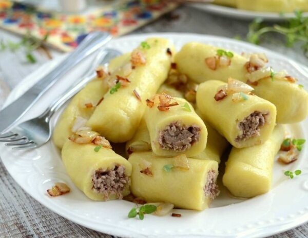Шаг 6: Для приготовления кнедликов, нагрейте кастрюлю с водой до кипения. Положите кнедлики в кипящую воду и варите около 5-7 минут