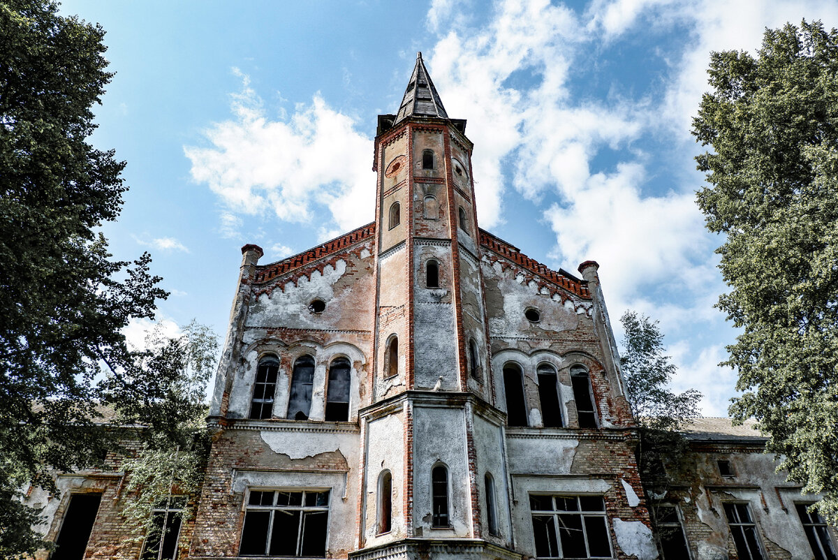 Заброшенные больницы всегда притягивали к себе любителей неформального отдыха, ведь зачастую за дверьми таких мест скрываются леденящие душу истории и эта больница не исключение. Здесь вы не найдете аккуратных газонов, ровных дорожек и экскурсоводов. Здесь вам придётся быть максимально осторожным, поскольку в любой момент может обвалиться крыша или пол, на котором стоите. Психиатрическая больница Алленберга, в которой пересекаются сразу несколько эпох, построена в стиле псевдоготики в 1850 году немцами и имеет огромную территорию. Конечно, в настоящее время, напоминаний о том, что эта территория когда-то была больницей не осталось, а вот то, что здесь была военная часть- очевидно. Больница насчитывала около 1400 пациентов. Причем пациентом в то время мог стать фактически любой - от самых легких до неизлечимых заболеваний.