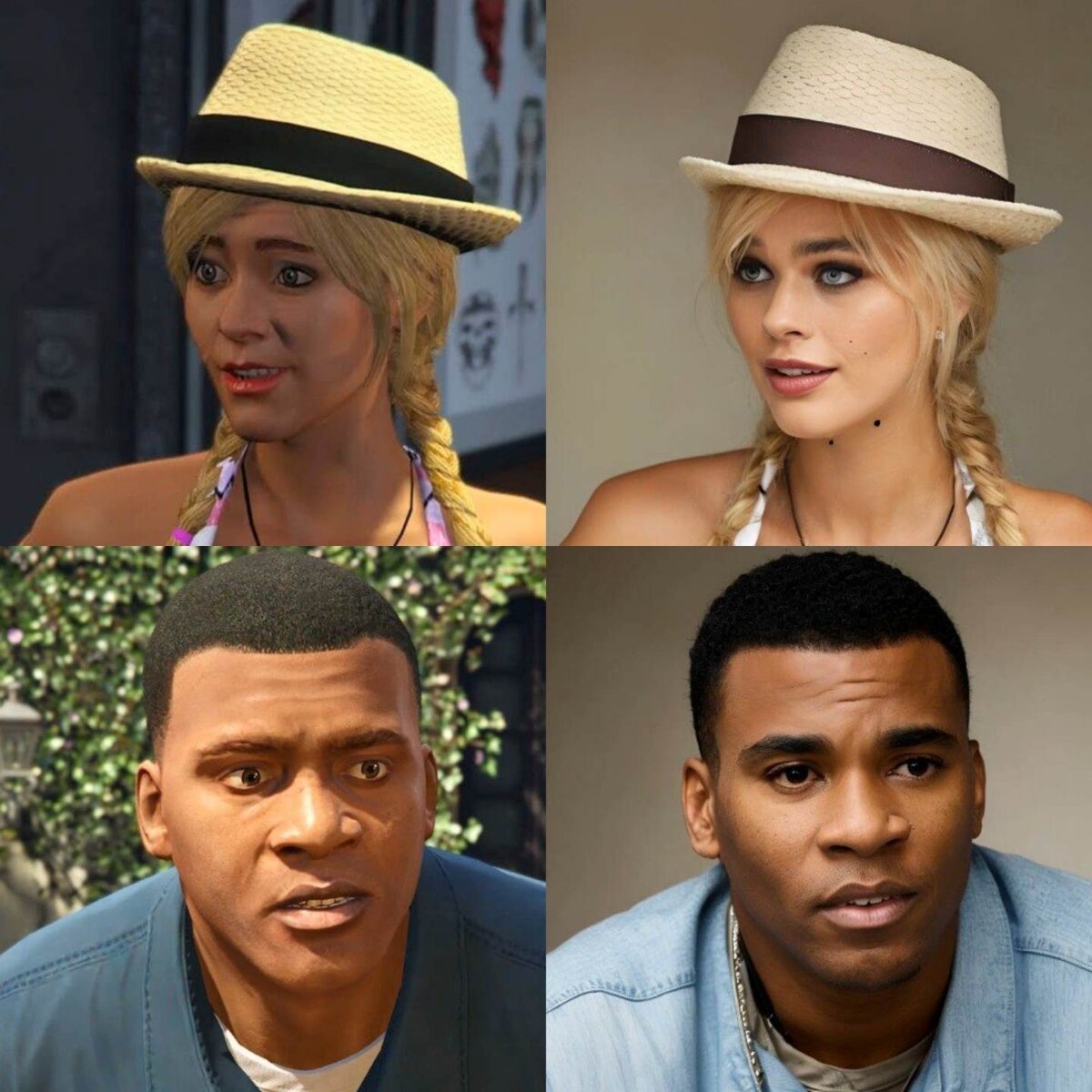 На волне популярности артов от нейросетей один из энтузиастов сгенерировал героев GTA 5 в виде «живых» людей. Практически все изображения получились фотореалистичными — их можно легко перепутать с фотографиями реального человека. Трейси и Франклин Примечательно, что Трейси получилась почти вылитой актрисой Марго Робби, которая многим известна по роли Харли Квинн в фильмах DC. А вот Ламар очень напоминает популярного комика Криса Рока. В GTA 6 может вернуться очень кровавое оружие из «Вайс-Сити»